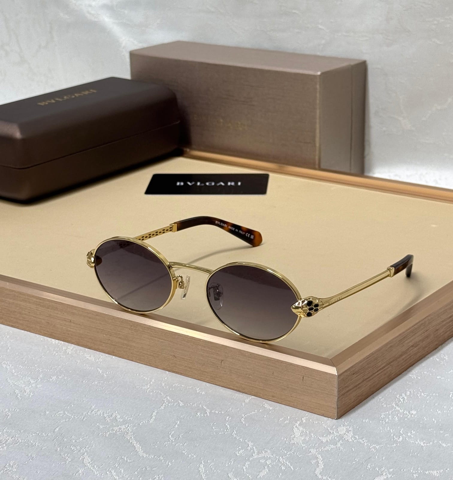 Bvlgari round metal sunglasses with a gold frame and Gray mirror lenses. Equipped with high-performance lenses, these sunglasses provide exceptional UV protection, shielding eyes from harmful rays and enhancing visual clarity, promoting eye health without compromising style. Eyewear or Sunglass Base: While most listings show this reference as eyeglasses (optical) frames, they can be fitted with tinted sunglass lenses — perfect if you want a fashionable luxury sunglasses look