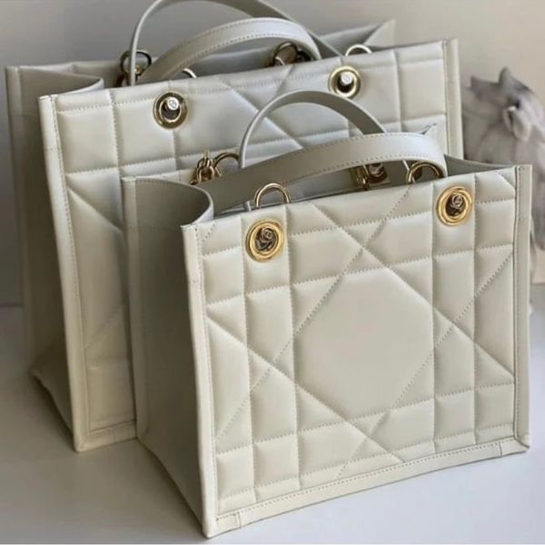 Christian Dior Long Size Quilted Leather Tote Shoulder Bag White 42x35x18cm