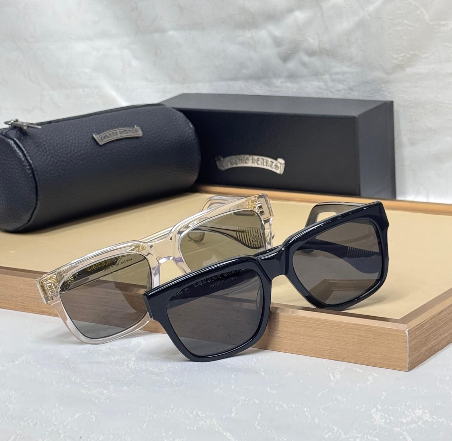Chrome Hearts Box Officer sunglasses in clear acetate. Equipped with high-performance lenses, these sunglasses provide exceptional UV protection, shielding eyes from harmful rays and enhancing visual clarity, promoting eye health without compromising style. Eyewear or Sunglass Base: While most listings show this reference as eyeglasses (optical) frames, they can be fitted with tinted sunglass lenses — perfect if you want a fashionable luxury sunglasses look