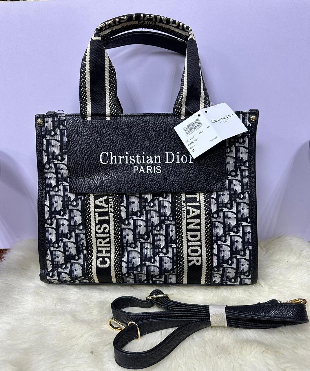 Dior Book Tote in black Dior Oblique embroidery and calfskin, a luxury designer tote from Christian Dior that combines iconic branding with everyday functionality. Designed by Dior’s creative team, this tote has become one of the house’s most recognizable. This tote blends luxury branding and casual elegance — perfect for everything from everyday errands and work to travel and weekend outings. Its bold Oblique pattern makes a fashion statement while still remaining versatile enough to pair with a variety of outfits.
