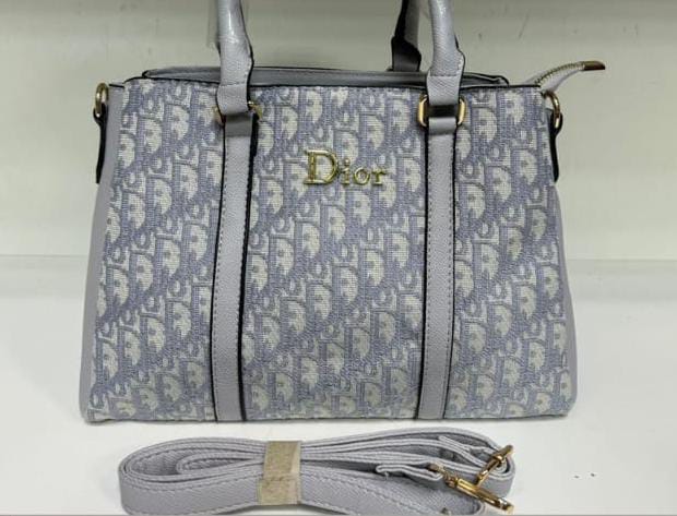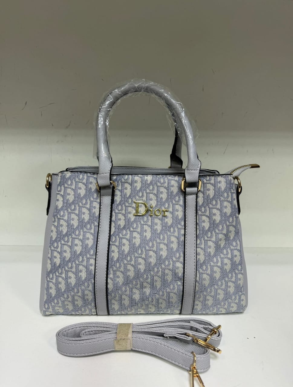 Dior handbag featuring the signature Oblique monogram canvas pattern in a light gray color with gold-tone hardware