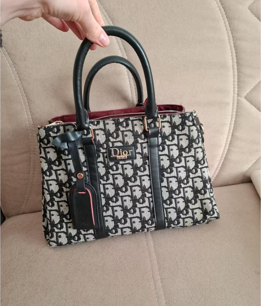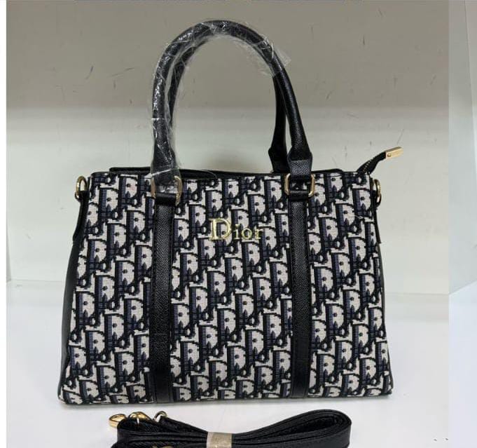 A classic, spacious tote fully embroidered in black Oblique, often in chambray or raffia-effect thread, designed to hold daily essentials and featuring the signature.