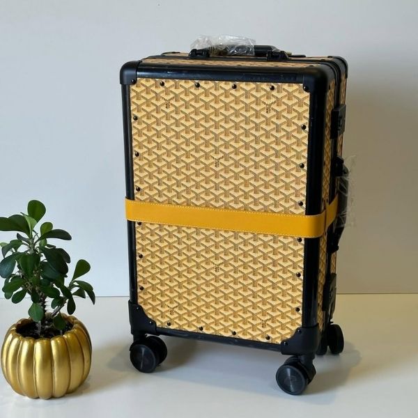 Goyard travel suitcase is a luxurious and highly sought-after piece of luggage that blends classic design with practical functionality. Each suitcase is handcrafted in France using the brand’s signature Goyardine canvas, a durable, water-resistant material woven from cotton, linen, and hemp and finished with the iconic hand-painted chevron pattern that makes the luggage instantly recognizable.