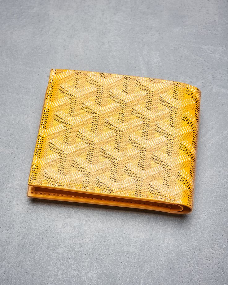 Goyard Victoire bifold wallet crafted from signature Goyardine coated canvas, featuring the iconic chevron pattern. The slim bifold design opens to a well-organized interior with multiple card slots and bill compartments, offering a balance of elegance and everyday functionality. Finished with refined leather trim and precise craftsmanship, it is lightweight, durable, and designed for long-lasting use.
