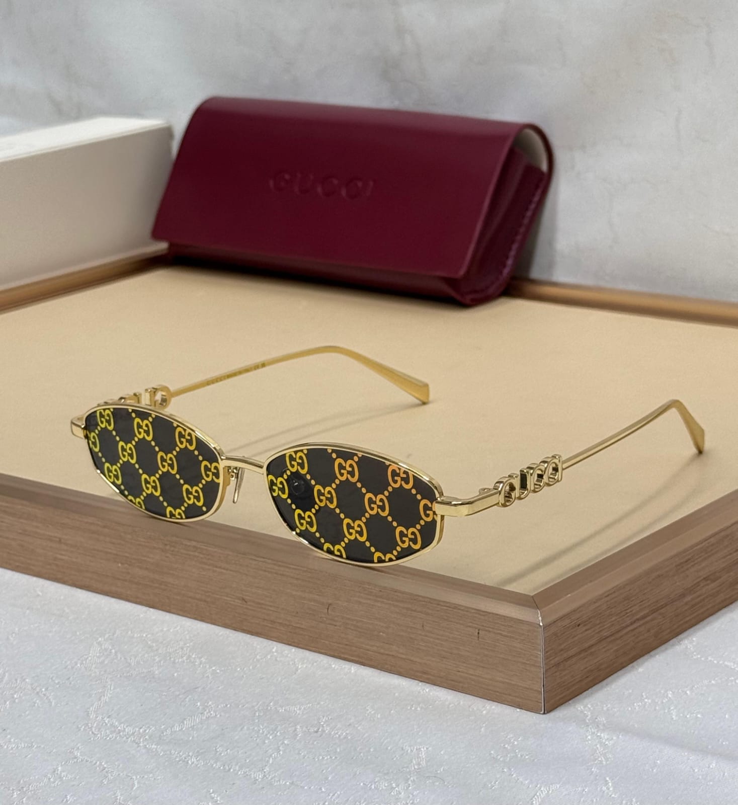 Gucci GG1802S Oval-Frame Sunglasses In Gold-Toned Metal Frame With Guccissima Logo Lenses