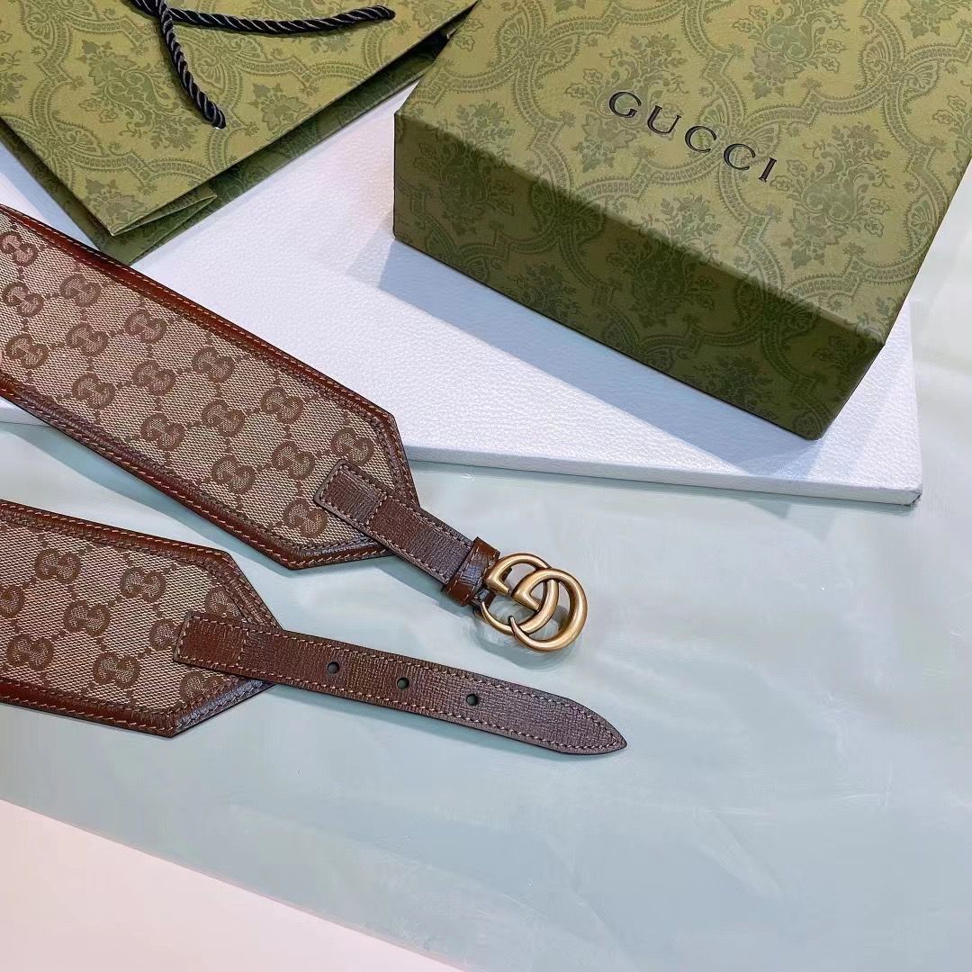 Gucci GG Marmont belt combines GG Supreme monogram canvas with brown leather, offering a versatile and stylish accessory that reflects classic Gucci heritage with modern design. It’s part of the Marmont line, known for its vintage-inspired GG hardware and timeless appeal.