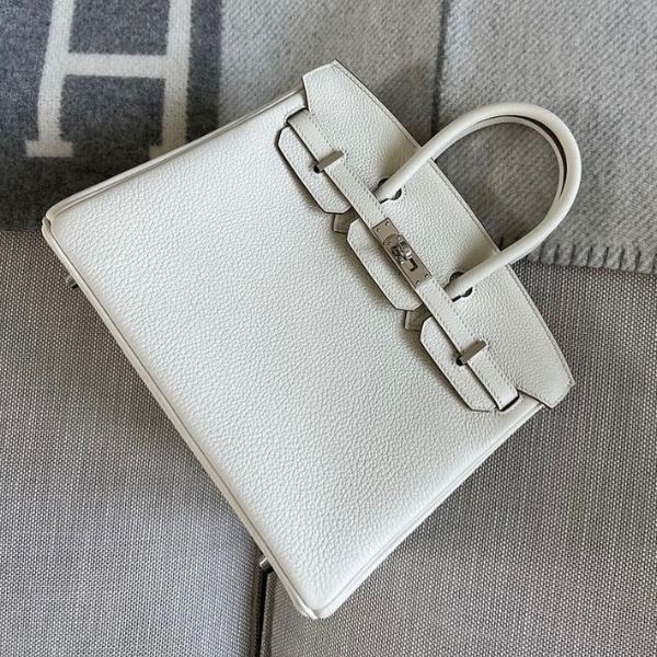 Hermès Birkin To Go with Palladium hardware is a quintessential luxury handbag that embodies timeless elegance and exceptional craftsmanship. Crafted from supple Togo leather, it features a slightly pebbled texture that is both durable and scratch-resistant, maintaining its shape beautifully over time. The bag is designed with a structured silhouette, two rolled top handles, and the signature front flap with leather straps and a turn-lock closure, complemented by a clochette, padlock, and keys.