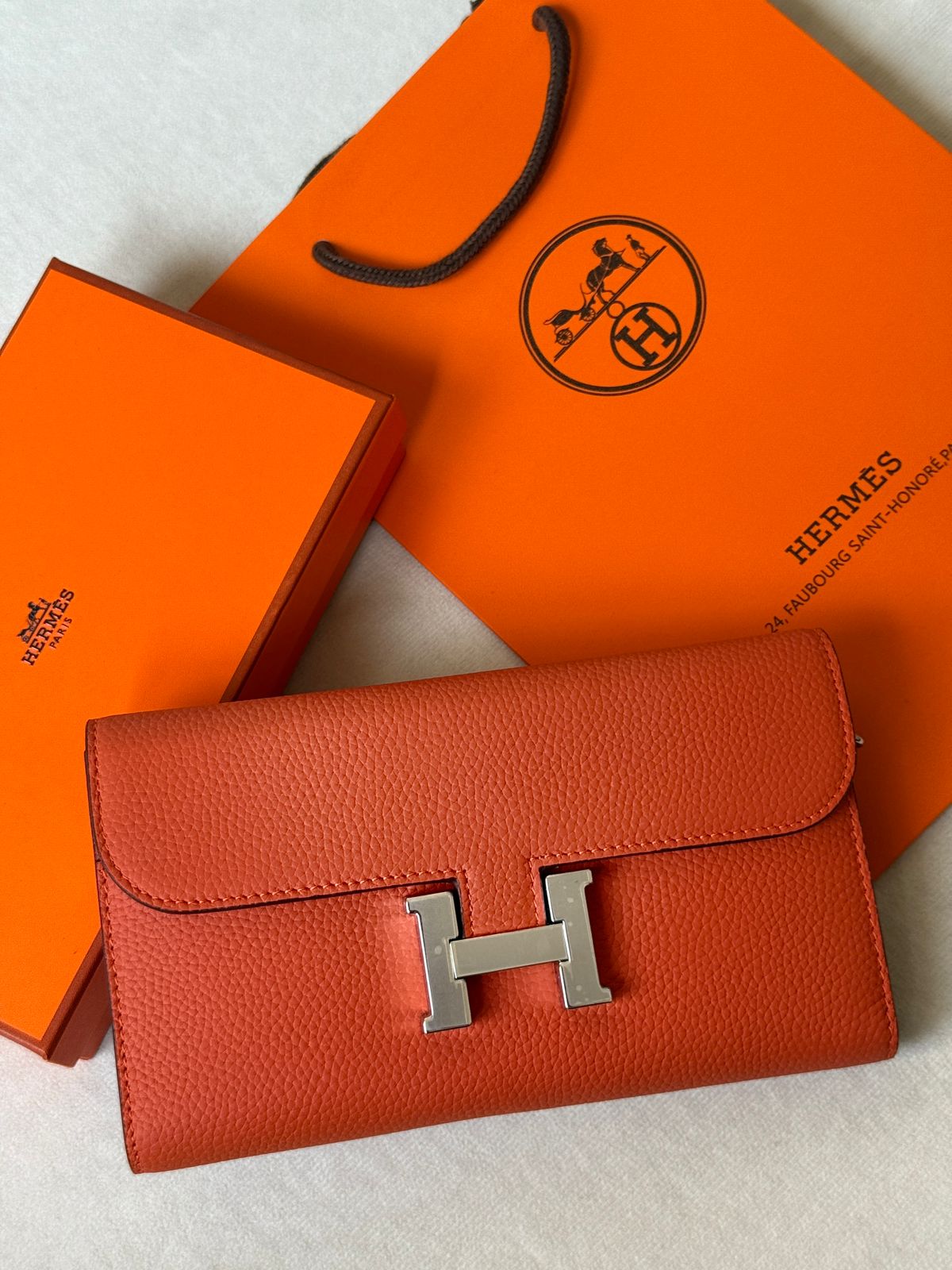 Hermès Constance To Go wallet in Orange Epsom leather with palladium hardware
