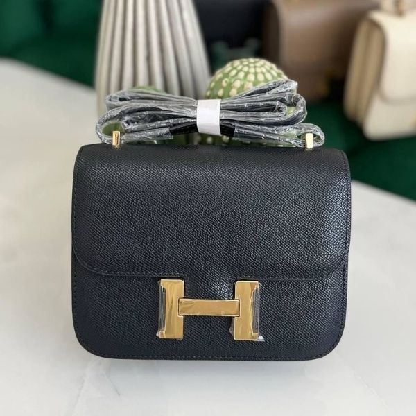 Hermès Mini Constance 18 Epsom with Gold Hardware is a luxury crossbody shoulder bag known for its refined, compact elegance. Crafted in Epsom leather—a structured, fine-grained calfskin that’s lightweight yet durable—the Mini Constance measures approximately 18 cm in width, making it a versatile option for both day and evening use. Its signature H-shaped clasp in polished gold-tone hardware adds a distinctive, high-end touch, while the clean lines and minimal profile emphasize Hermès’s timeless design language.