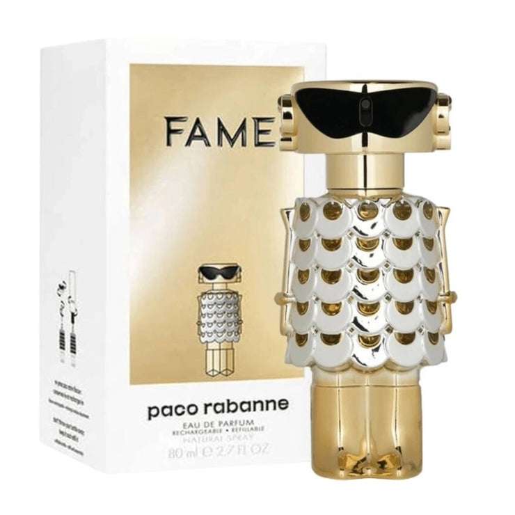 Paco Rabanne Fame Eau De Parfum is a celebration of femininity, confidence, and modern glamour. Its radiant blend of fresh florals, juicy fruits, and sensual woods makes it a signature scent for the bold and stylish woman.