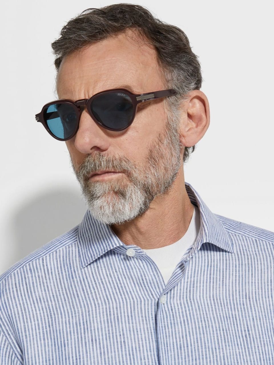 Zegna EZ0252 Sunglasses in a violet or Dark Brown acetate frame with Grey lenses